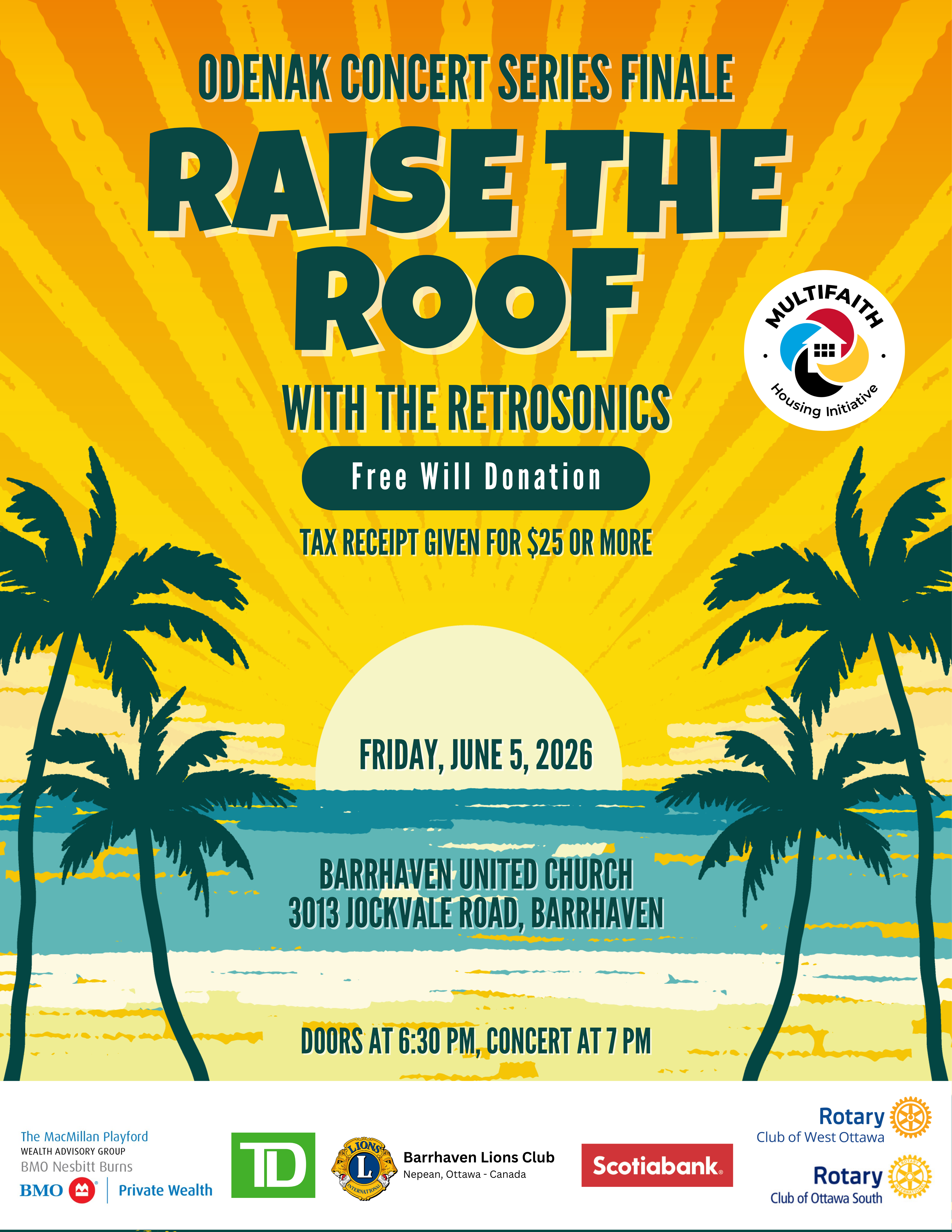“Raise the Roof” with the Retrosonics is scheduled for Barrhaven United Church, 3013 Jockvale Road, Friday June 5 at 7p-m.